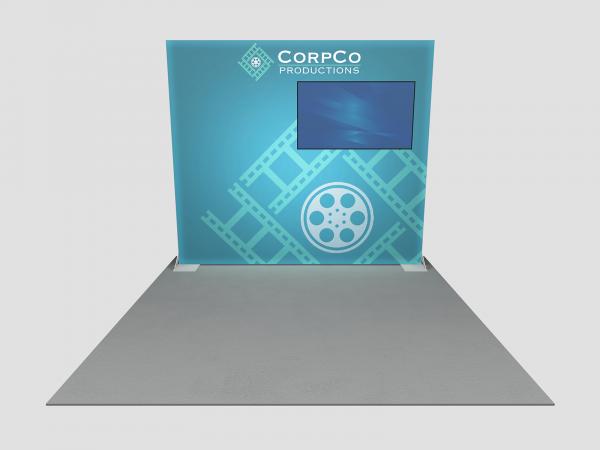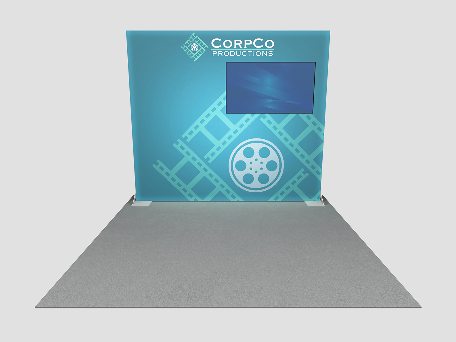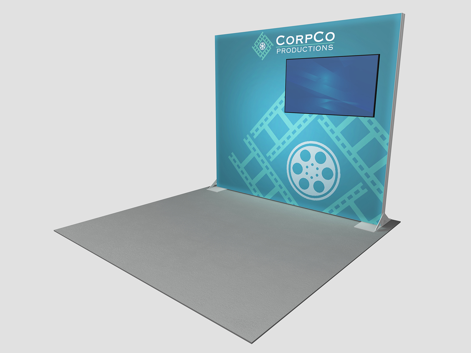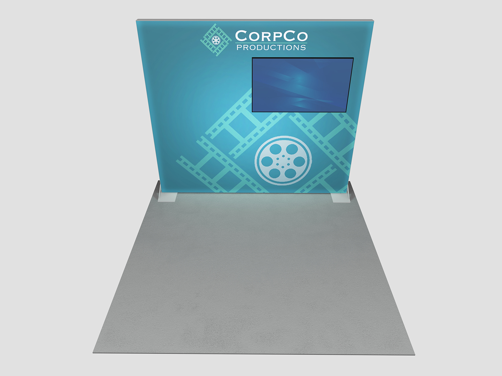 Quite often, a few custom elements added to the design can give the entire design a custom look even if it’s as simple as some colorful laminated workstations, shelves, or a reception counter. Custom laminated soffits and backlighting are also nice touches that are inexpensive and well worth the investment. As a bonus, if you re-rent the same exhibit, your second rental will most likely be less expensive, since your first rental covered the cost of those custom components.