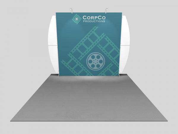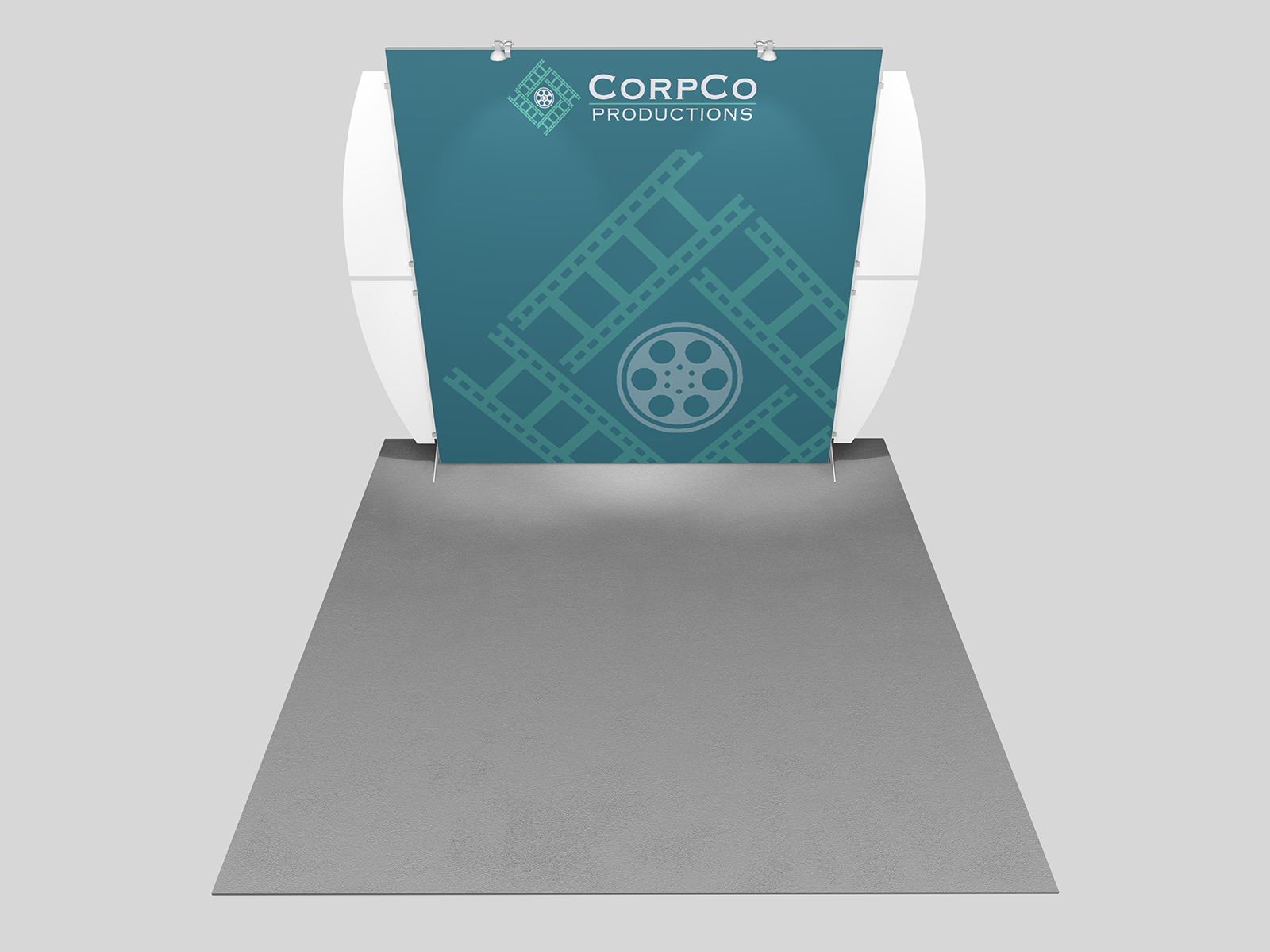 Quite often, a few custom elements added to the design can give the entire design a custom look even if it’s as simple as some colorful laminated workstations, shelves, or a reception counter. Custom laminated soffits and backlighting are also nice touches that are inexpensive and well worth the investment. As a bonus, if you re-rent the same exhibit, your second rental will most likely be less expensive, since your first rental covered the cost of those custom components.