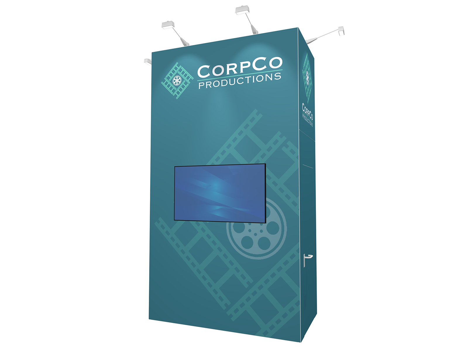 Towers are the ideal building block for creating a customized island exhibit. Start by choosing the tower size. Then add counters, workstations, lightboxes, and furniture to complete the design. For many exhibitors, flexibility is crucial. Their booth size and messaging often changes depending on the show and the audience. A tower serves as the central feature in the booth design but everything else can vary. Perfect!