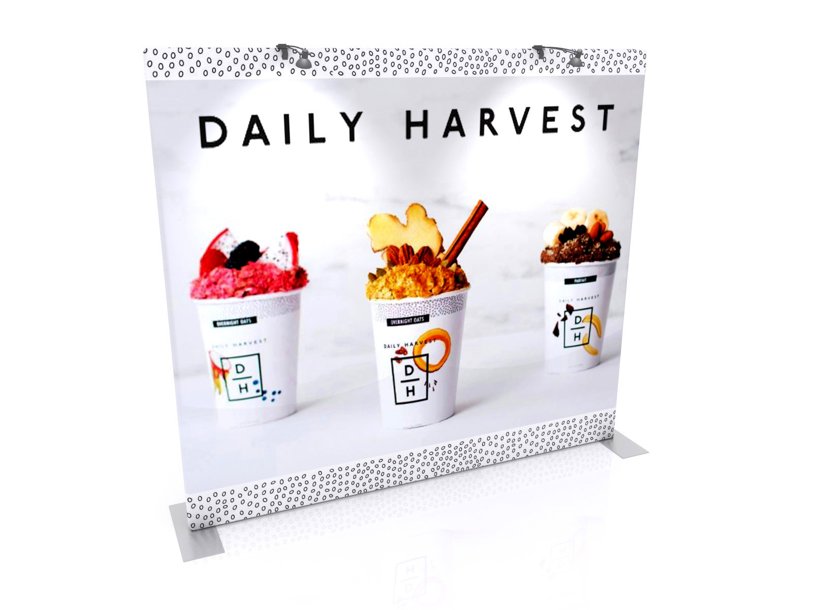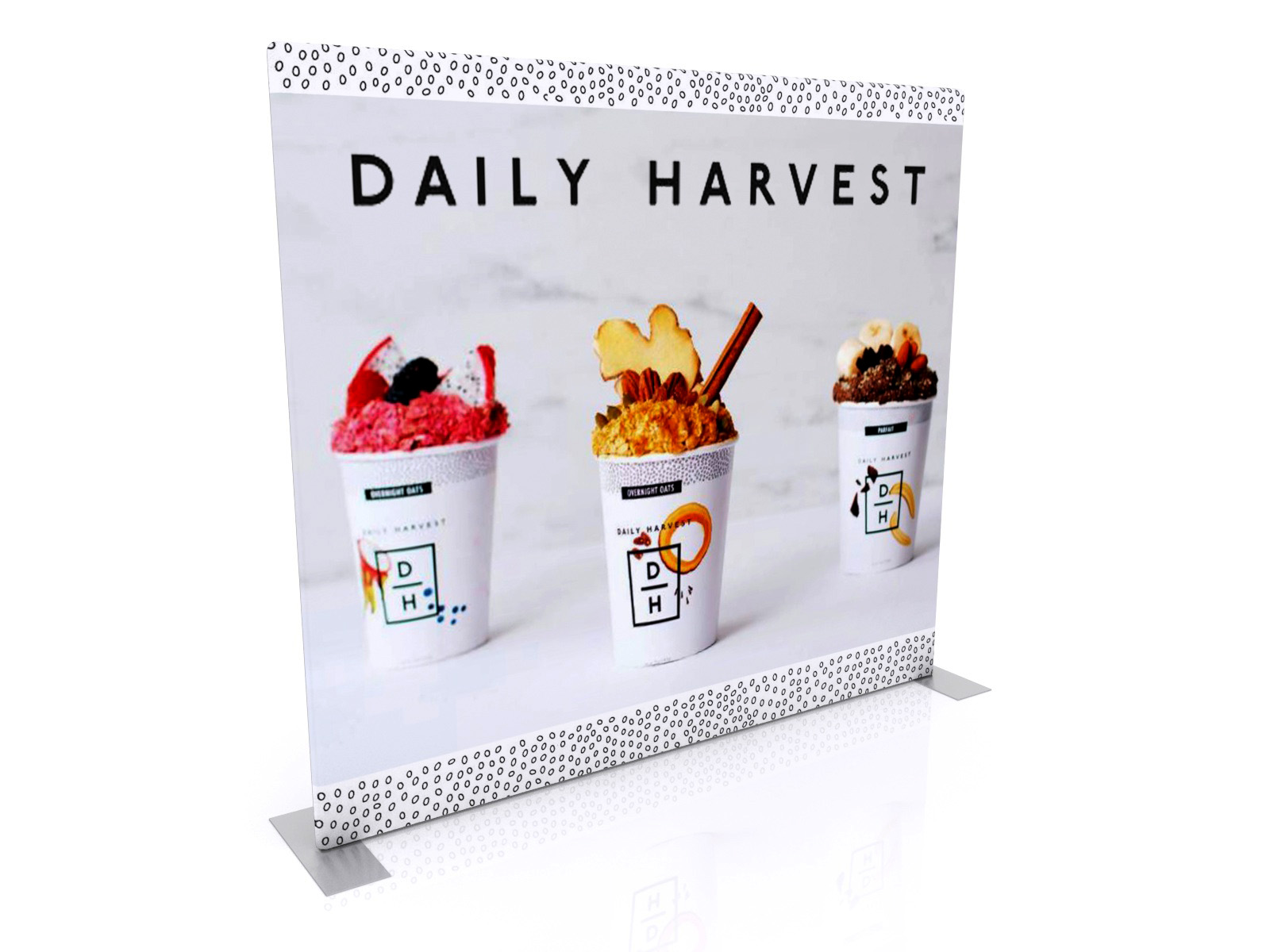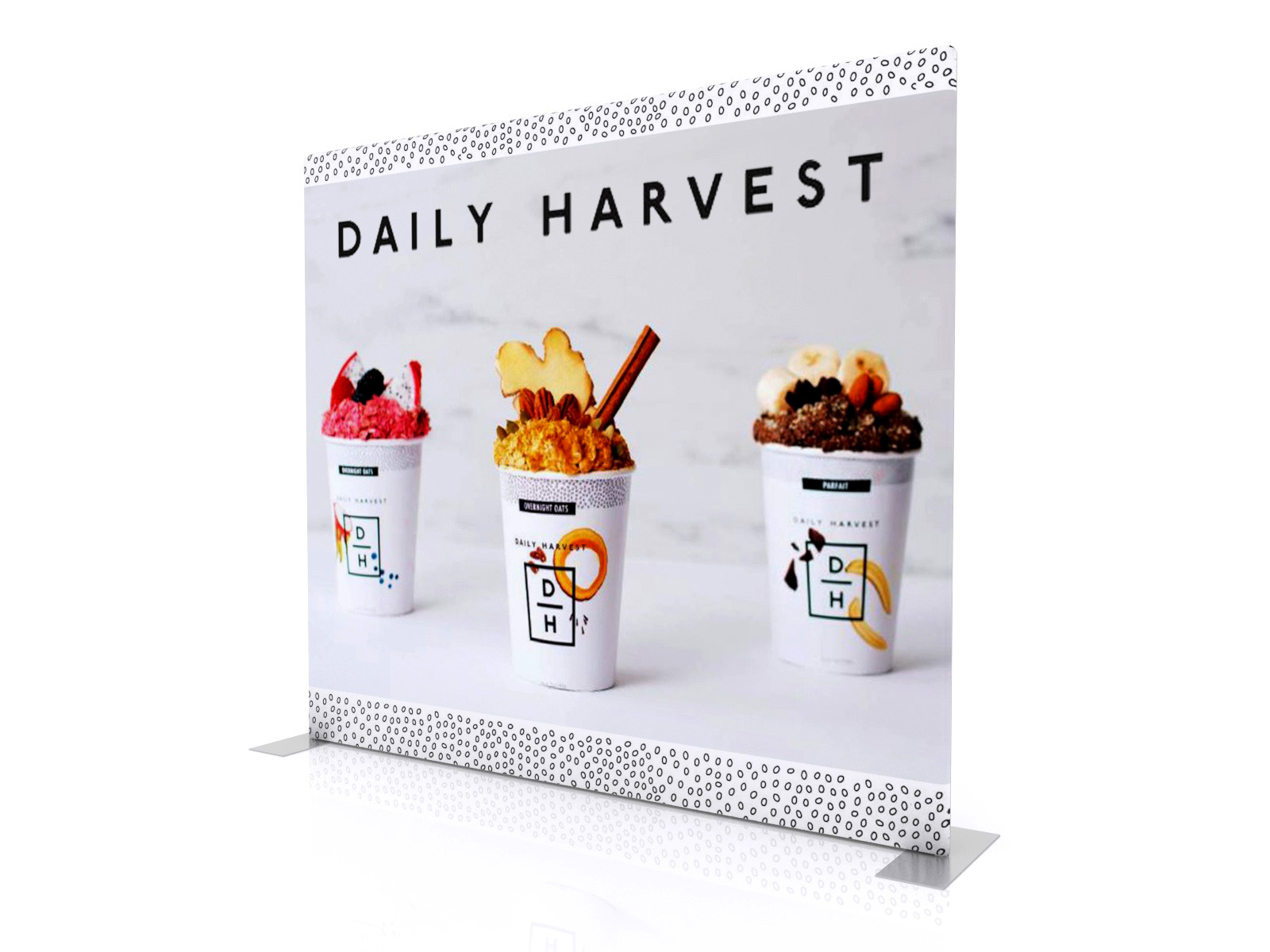 Tension fabric graphics attach to a frame so the fabric is taut edge-to-edge, creating “tension.” Typically, the graphic has Velcro hook sewn along the border, usually top and bottom, and attaches to Velcro loop on the frame. A silicone bead or welting can also be sewn to the edge of the tension fabric graphic. Those are referred to as Silicone Edge Graphics(SEG).